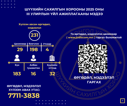Дөчин есдүгээр зүйл. 6.Хуульд заасан үндэслэл, журмын дагуу шүүгчийг албан тушаалаас нь түдгэлзүүлэх, огцруулах болон сахилгын бусад шийтгэл ногдуулах чиг үүрэг бүхий Шүүхийн сахилгын хороо ажиллах бөгөөд түүний бүрэн эрх, зохион байгуулалт, үйл ажиллагааны журам, бүрэлдэхүүнд тавих шаардлага, томилох журмыг хуулиар тогтооно.