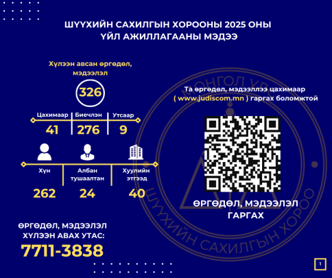 ШҮҮХИЙН САХИЛГЫН ХОРООНЫ 2025 ОНЫ САХИЛГЫН ХЭРЭГ ХЯНАН ШИЙДВЭРЛЭХ АЖИЛЛАГААНЫ МЭДЭЭ